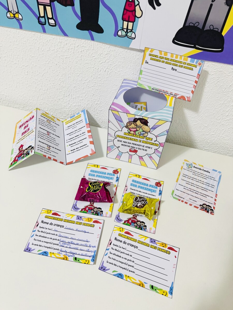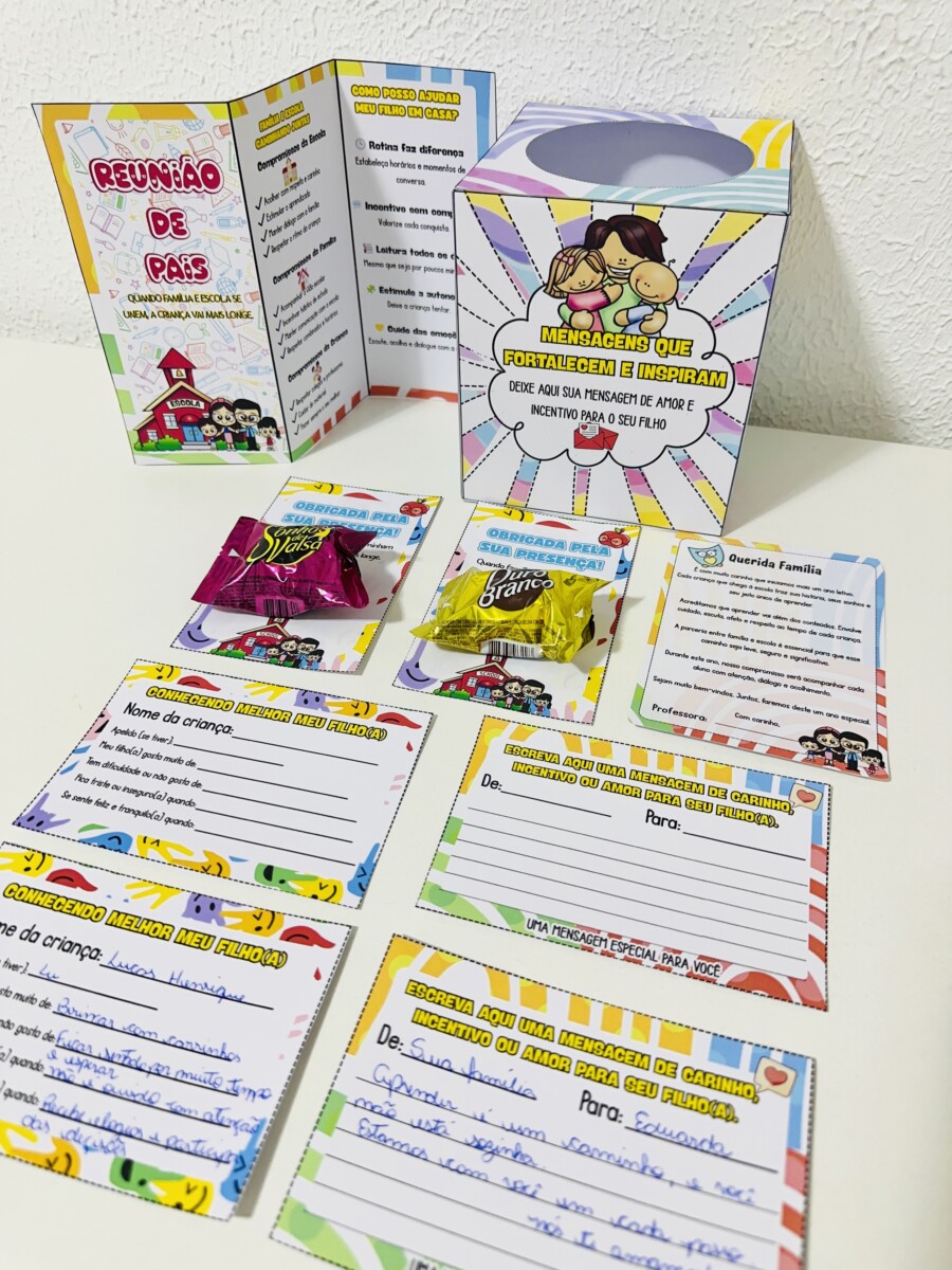 ✅ Caixa “Mensagens que fortalecem e inspiram” para guardar as mensagens das famílias, podendo ser usada ao longo do ano em momentos de acolhimento, leitura ou incentivo emocional.